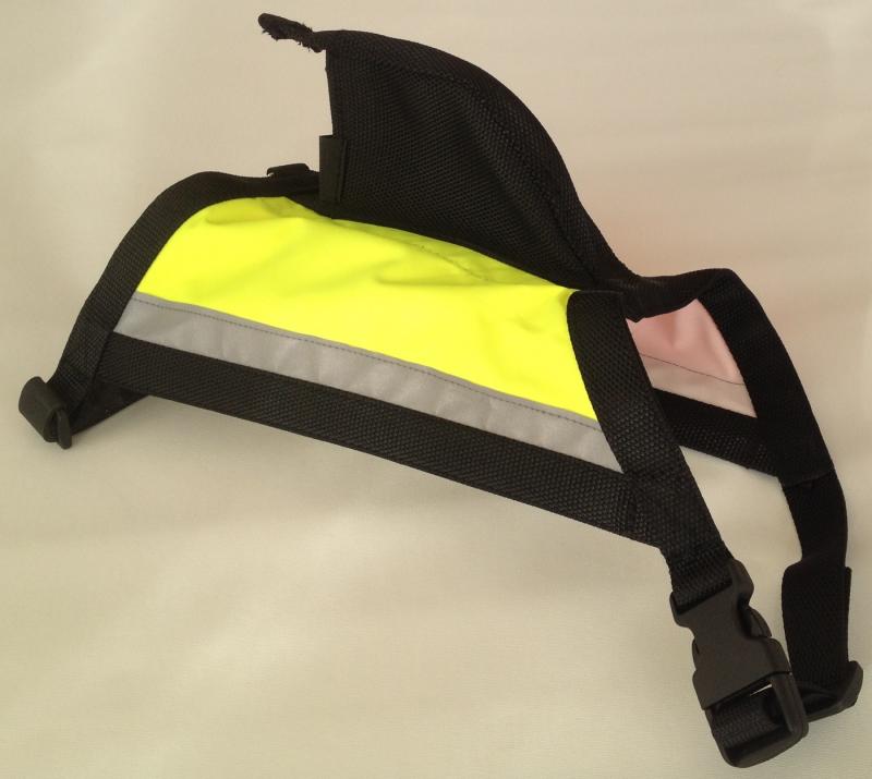 Gps väst som passar till Garmin Astro DC 30, DC 40 och nya DC 50 Man viker ihop halsbandet och stoppar in hela enheten i gps fickan på ryggen. Då man använder Garmins halsband i väst på ryggen så ökar man markant räckvidden, ökar i snitt 1 km. Västen är också 2 färgad så att man ser åt vilket håll djuret står i förhållande till hunden när den har ståndskall. Västen är försedd med reflexer och en ögla bak för spårlinan.