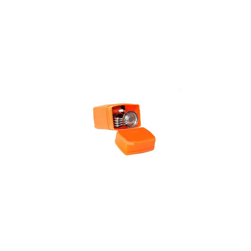 Kaasupoltin sopii mukana tulevaan pieneen muovikoteloon (väri oranssi), jossa poltin on helppo säilyttää ja kuljettaa.